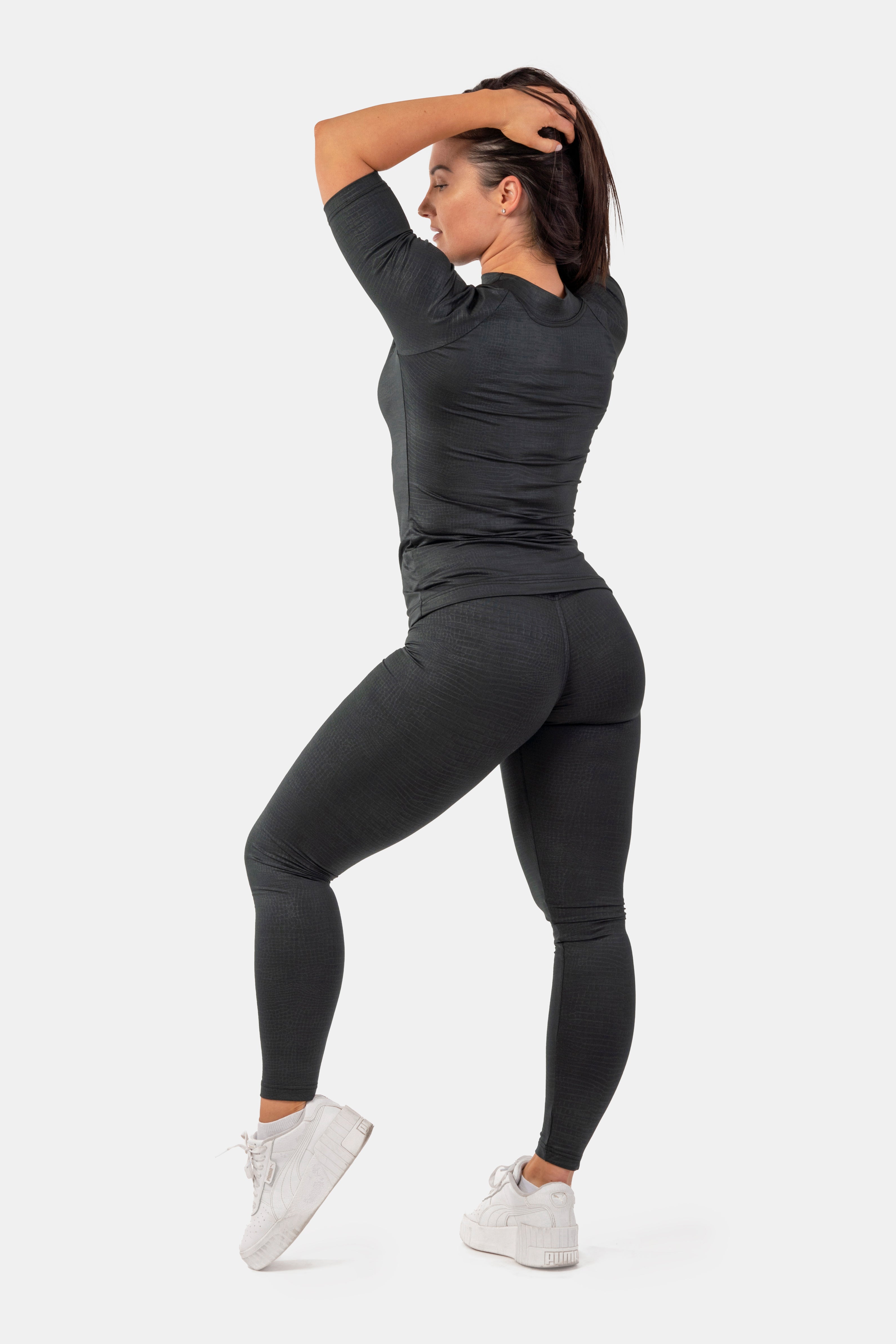 För en fulländad outfit kan du kombinera Python Leggings med den Python T-shirt för en stilren, sportig look. Denna kombination ger en snygg, trendig och bekväm outfit som passar både på gymmet och i vardagen.