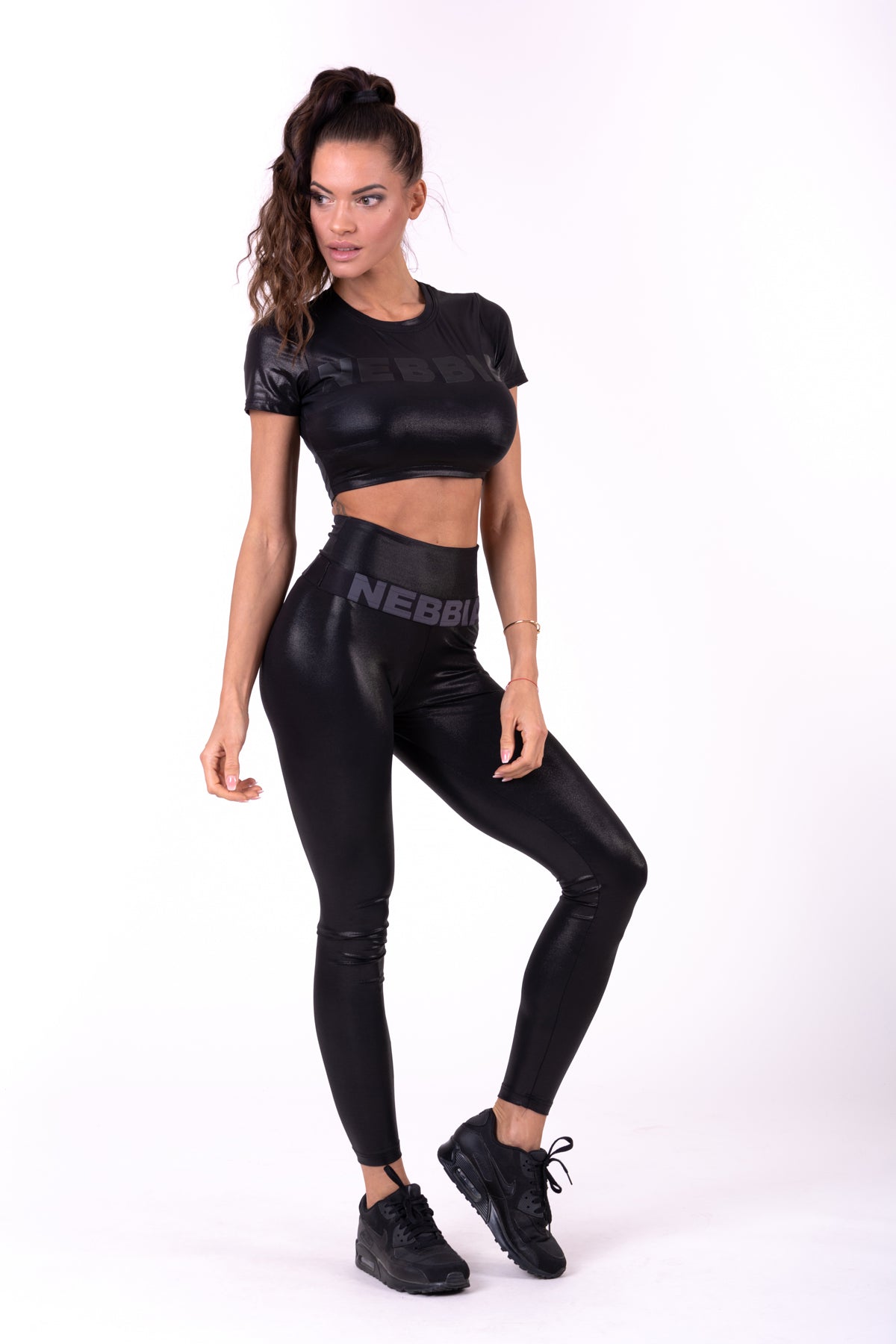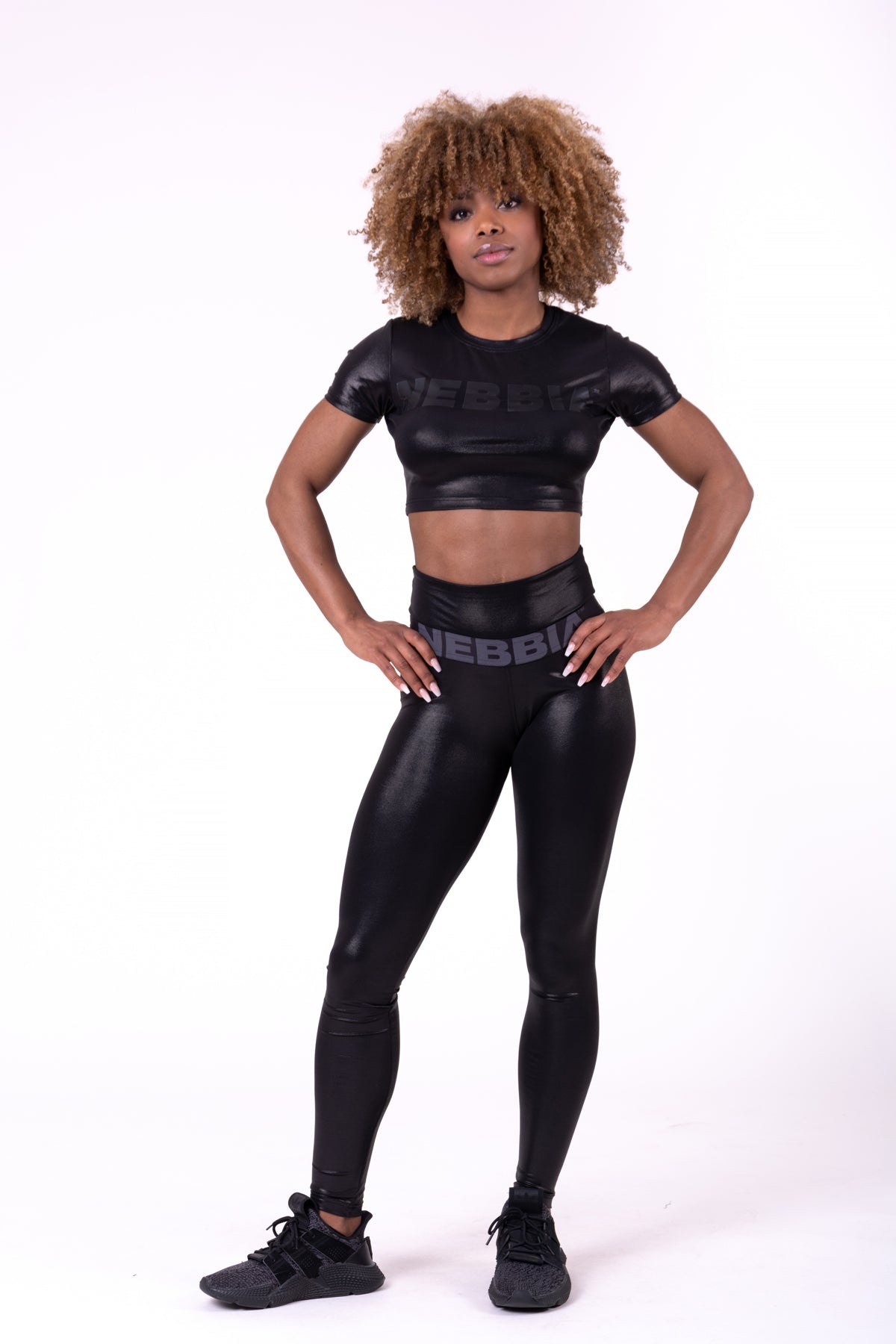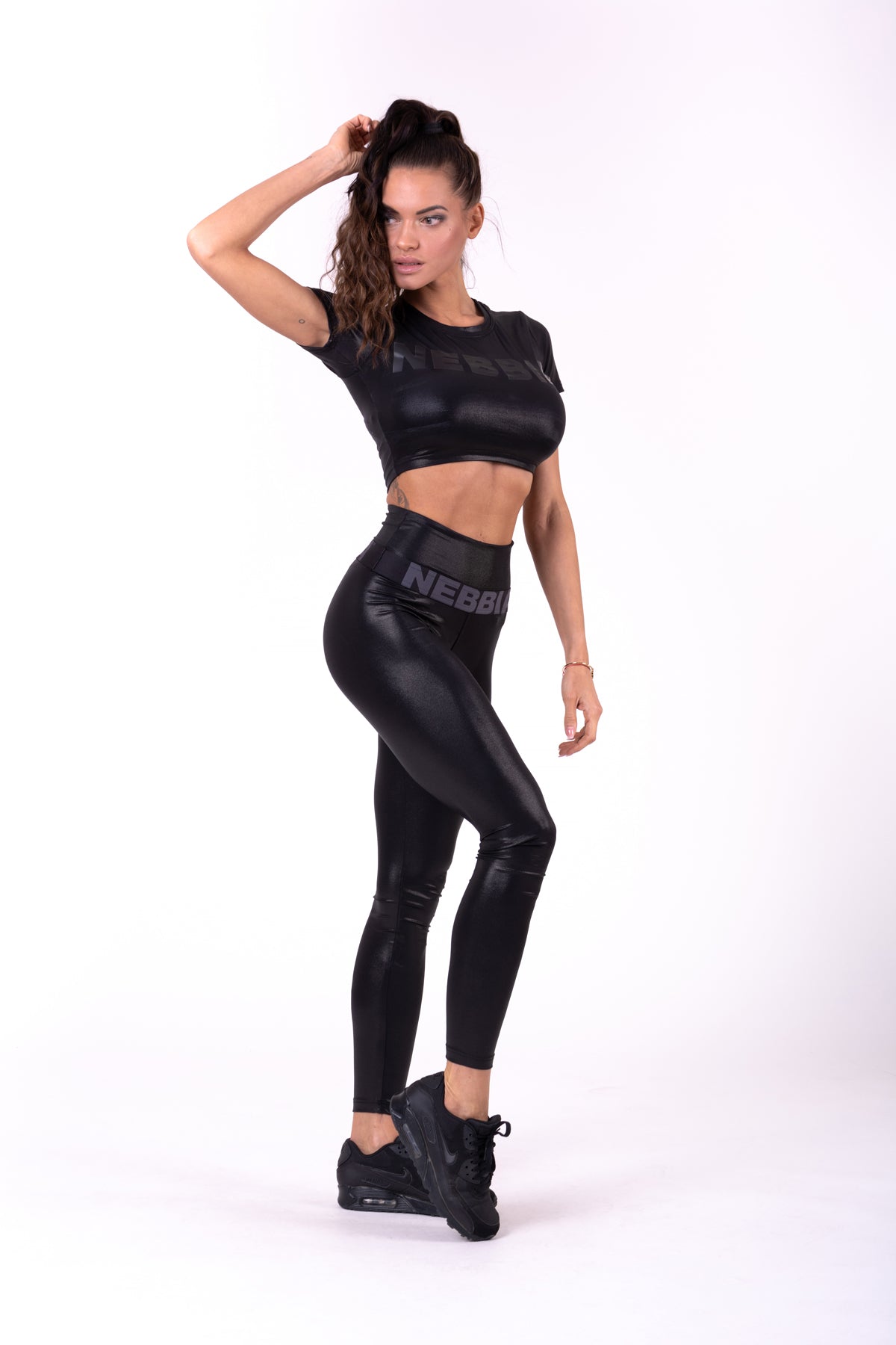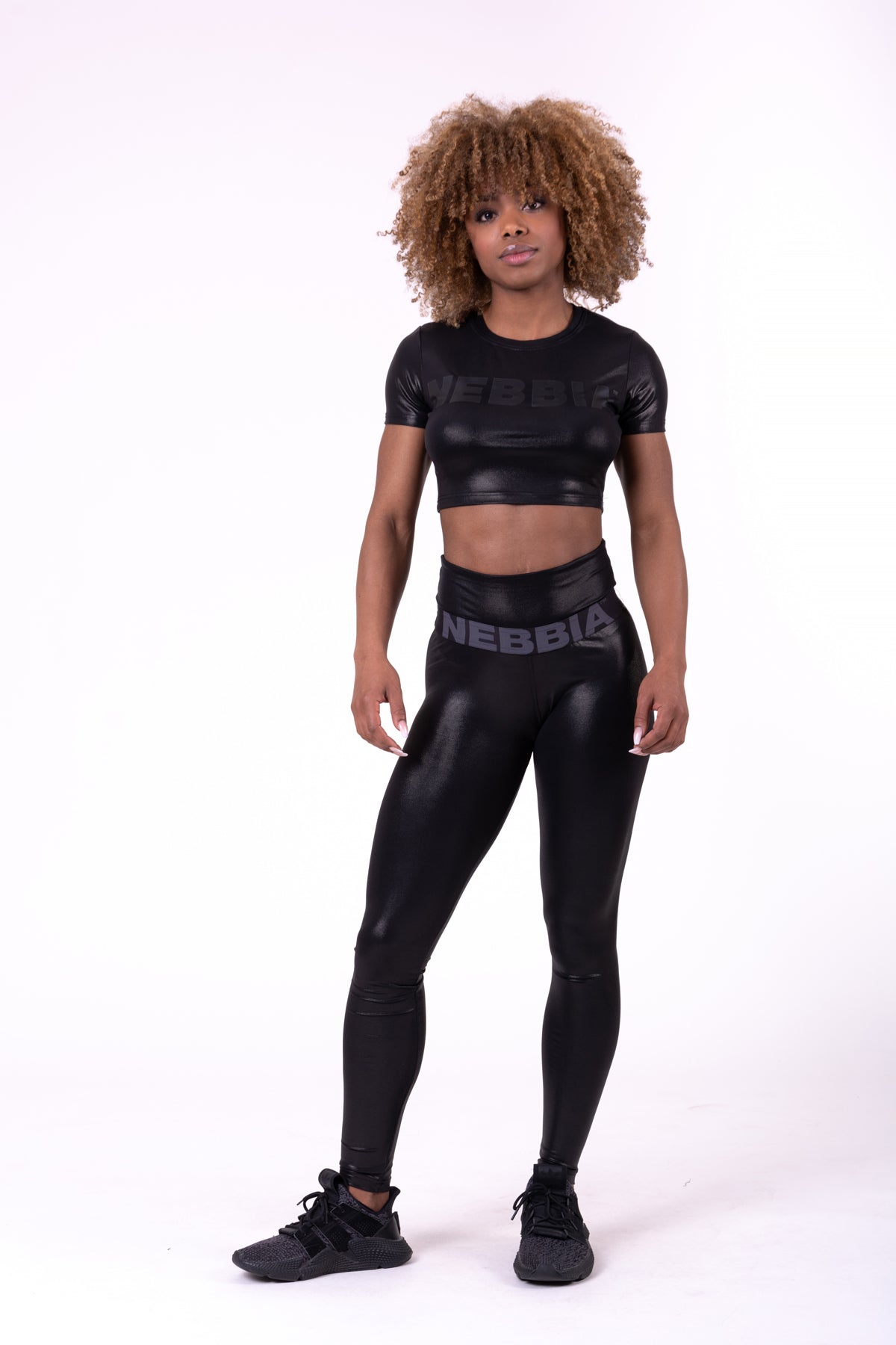 Den glansiga finishen ger en extra touch av elegans, medan det diskreta NEBBIA-trycket på toppen ger en subtil men stilren logotyp. Glossy Crop Top är ett mångsidigt plagg som passar perfekt till leggings, shorts eller jeans för en komplett look.