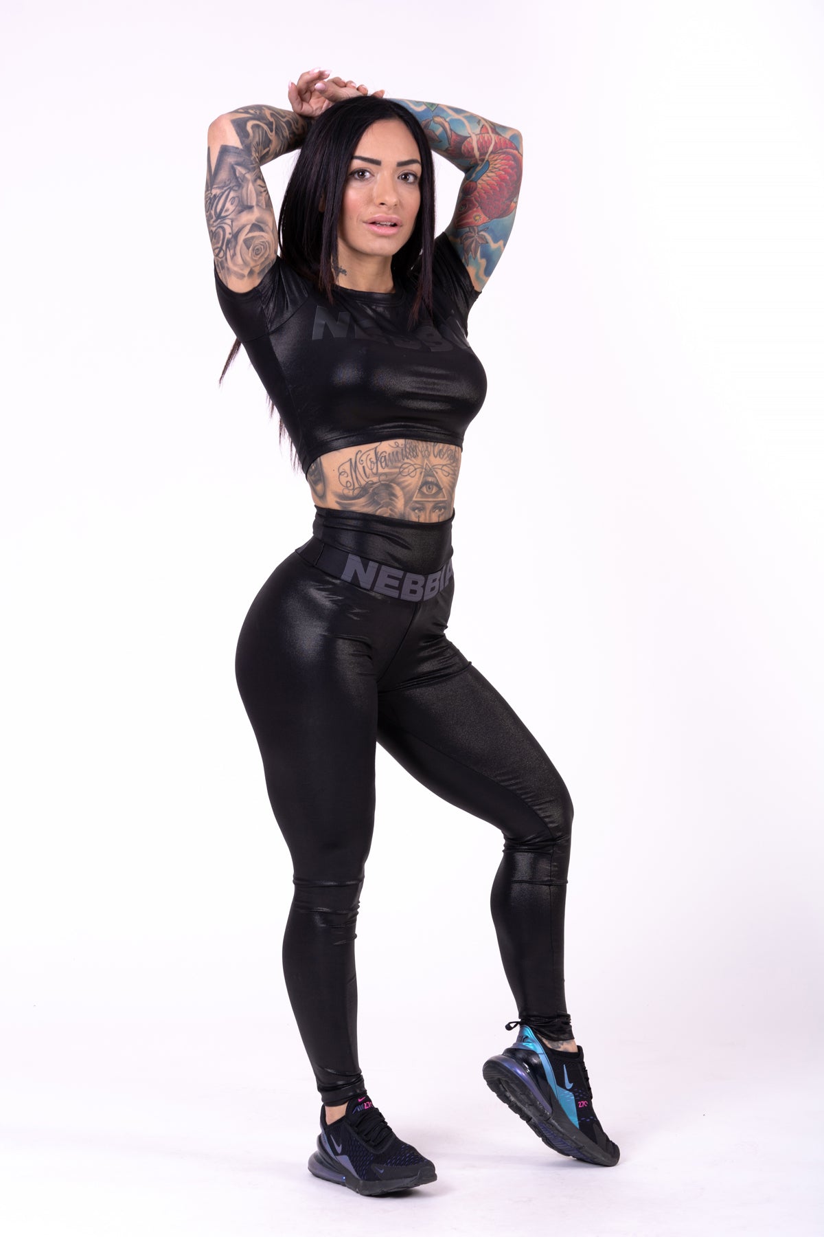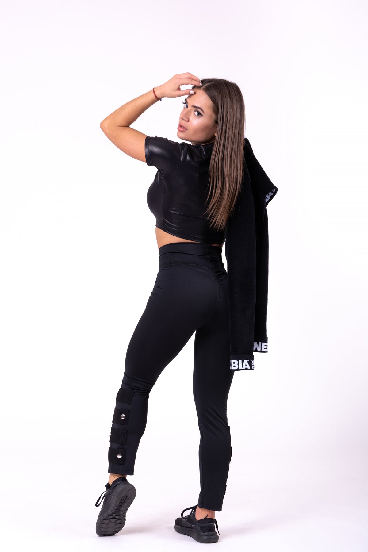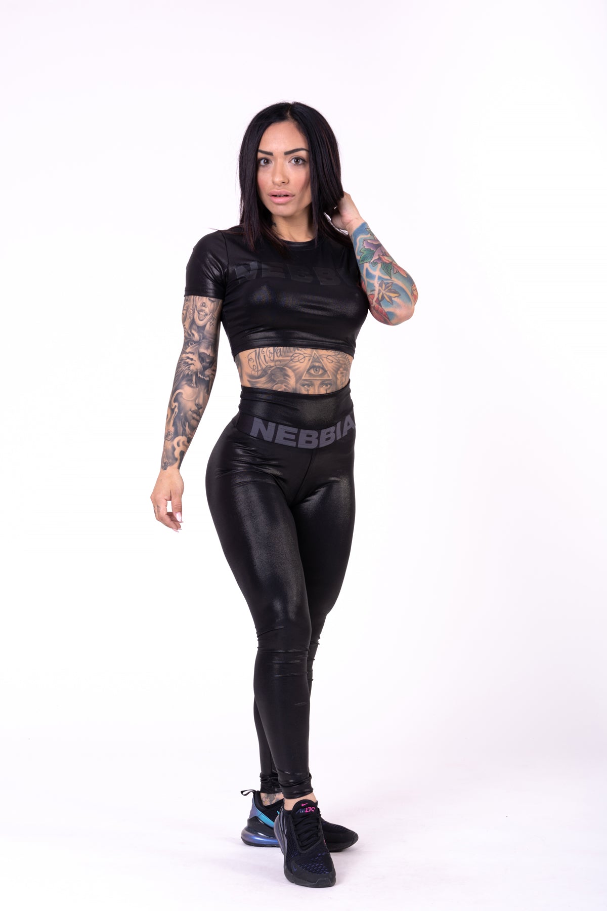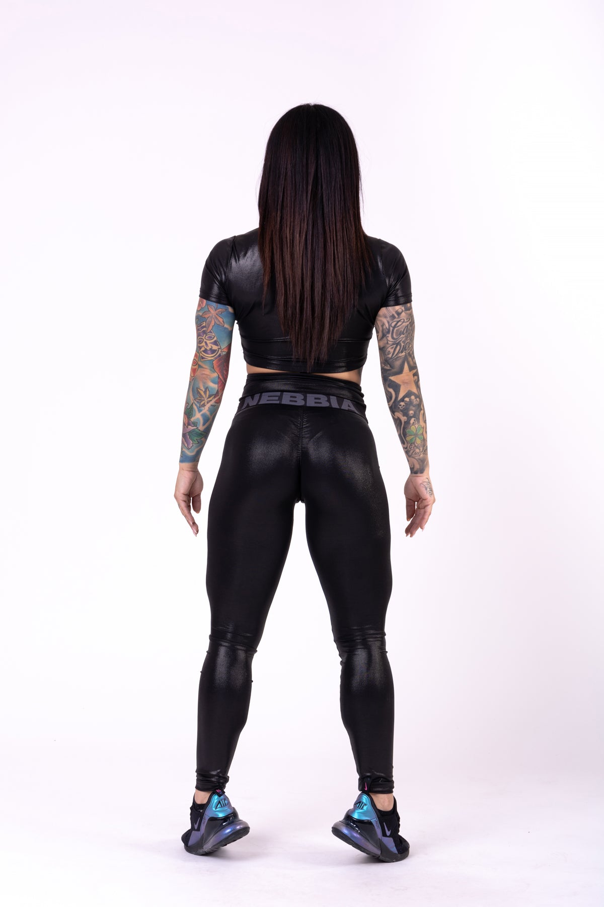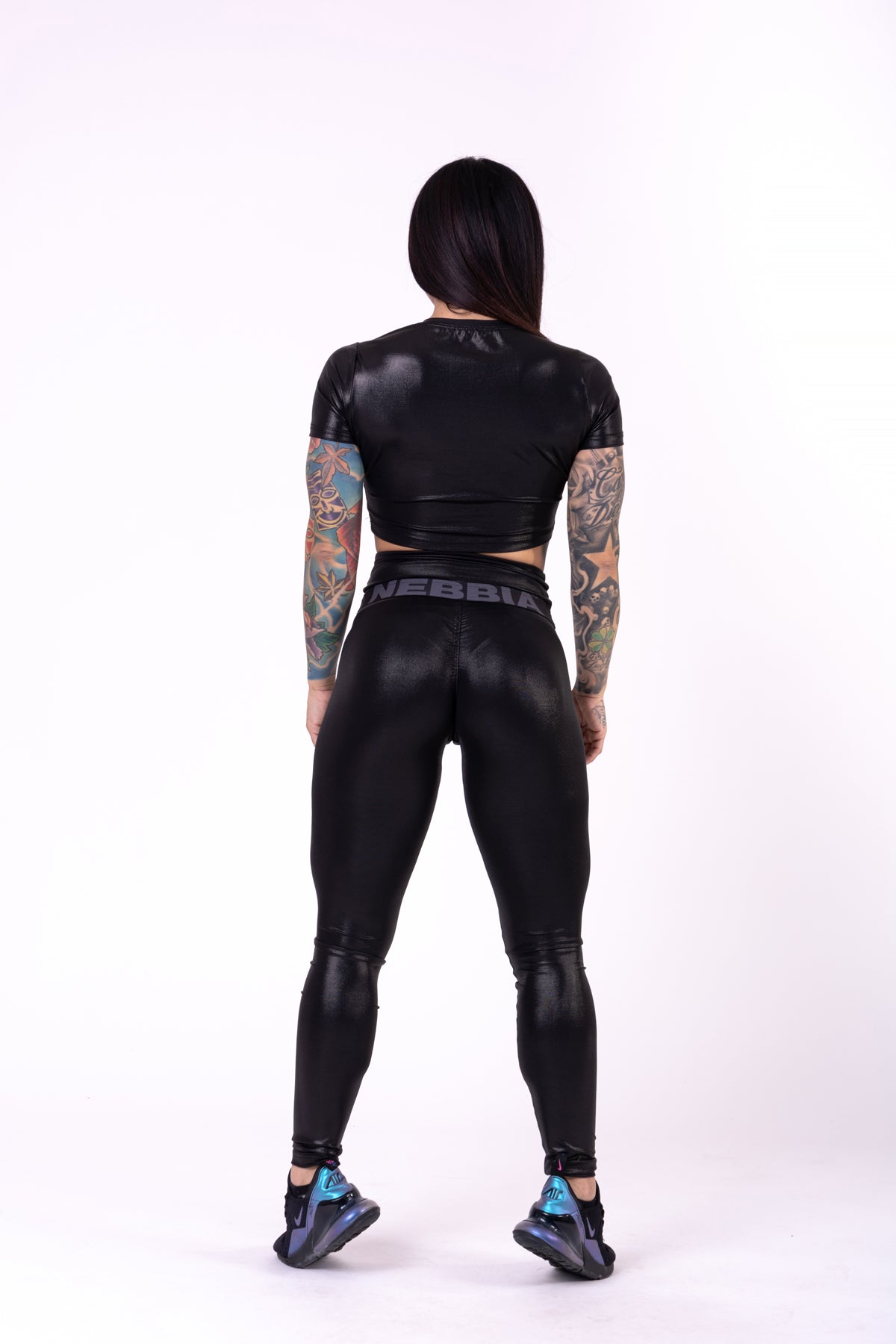 Den glansiga finishen ger en extra touch av elegans, medan det diskreta NEBBIA-trycket på toppen ger en subtil men stilren logotyp. Glossy Crop Top är ett mångsidigt plagg som passar perfekt till leggings, shorts eller jeans för en komplett look.