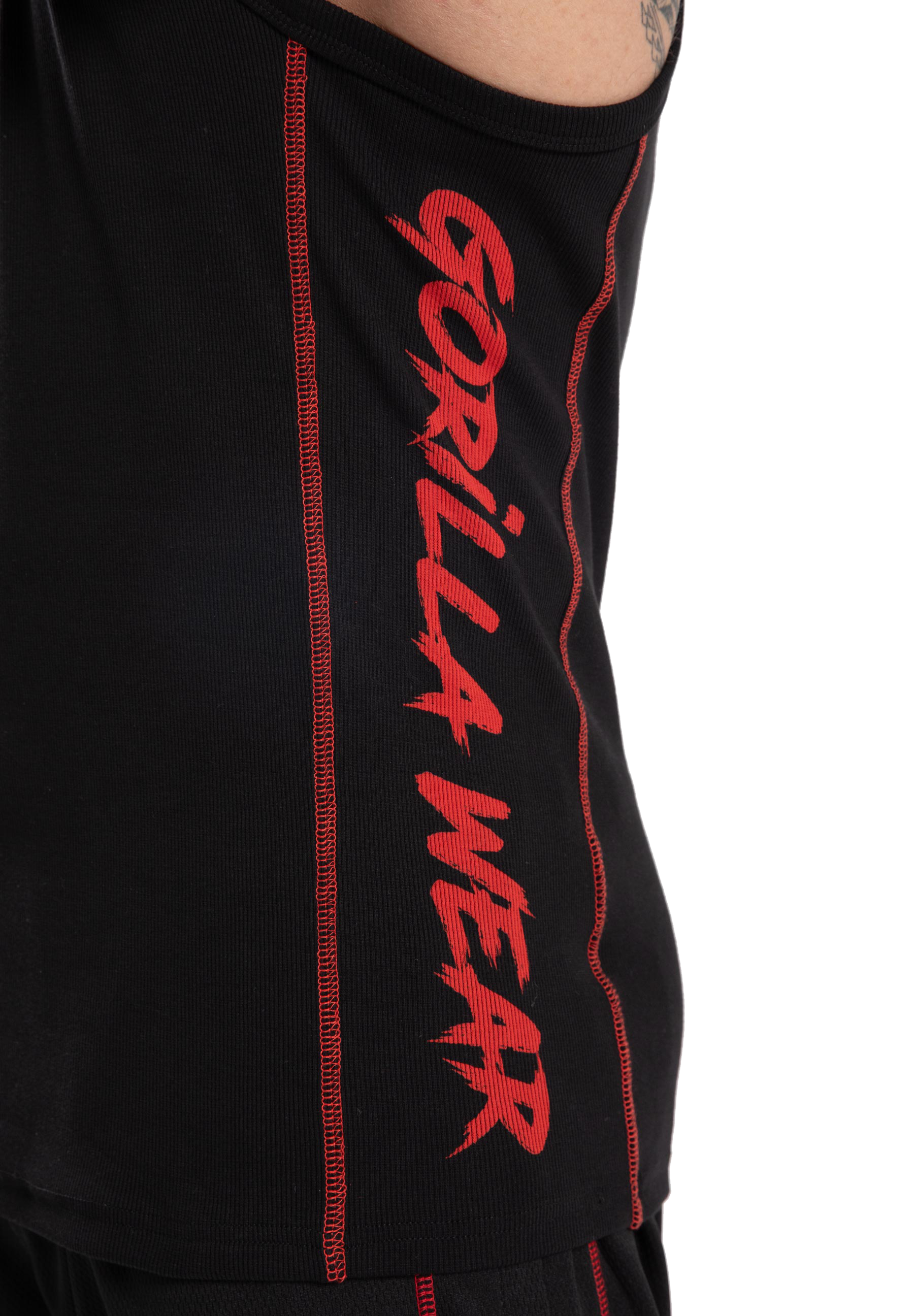 De distinkta sömmarna och de stora Gorilla Wear-logotyperna på framsidan ger linnet ett kraftfullt och djärvt uttryck som definitivt kommer att dra blickarna till sig. Välj bland tre stiliga färger: black/grey, black/red, och black/orange för att matcha din träningsstil.
