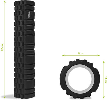 Självmassera och stimulera dina muskler: Genom att rulla på foam rollern kan du massera och stimulera muskler, vilket hjälper till att lindra spänningar och påskynda återhämtningen.